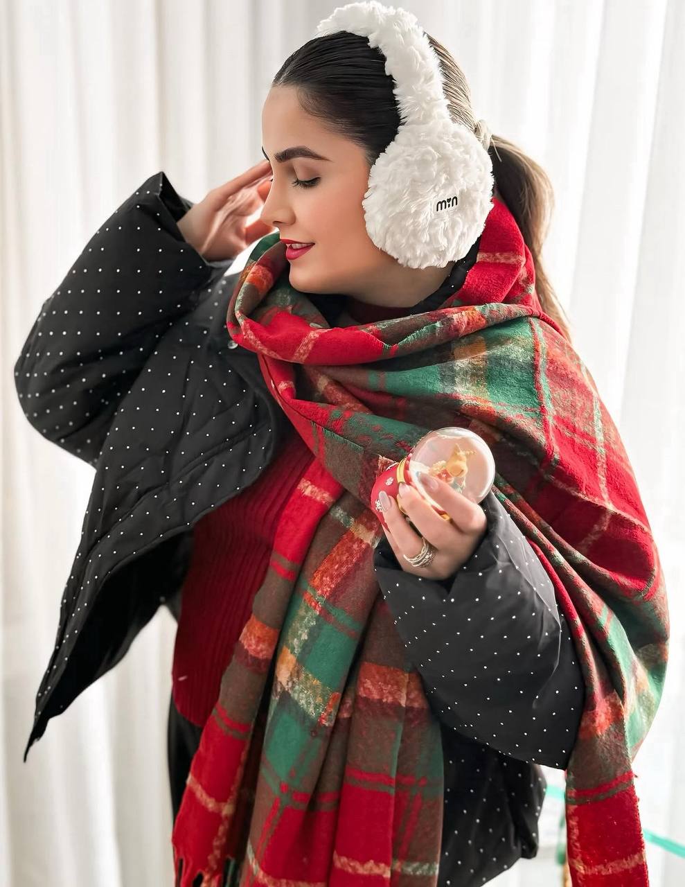 شال موهر قرمز چهارخونه
